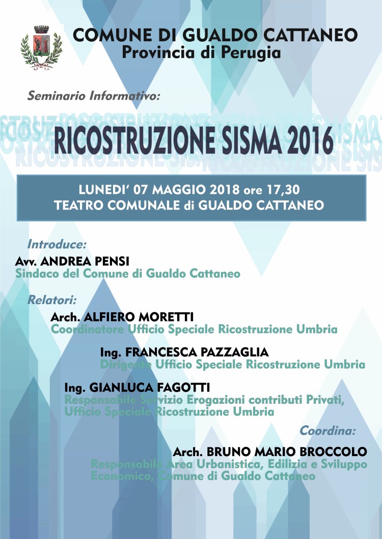 Lunedì 7 Maggio alle 17,30 al Teatro di Gualdo Cattaneo parliamo di ricostruzione con relatori di prim’ordine!